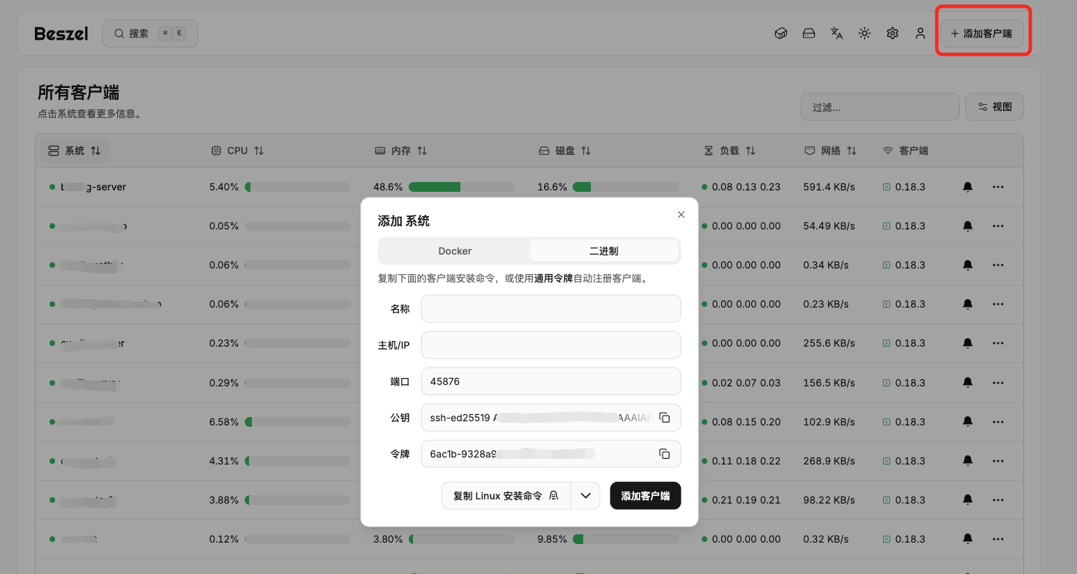 具体步骤:https://www.beszel.dev/zh/guide/hub-installation#docker-%E6%88%96-podman -