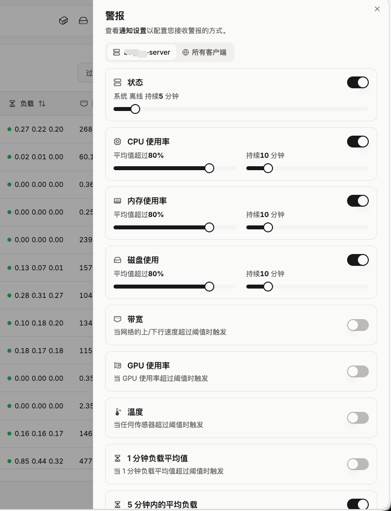 beszel的agent默认只监控跟路径,如果要监控多个分区,可以修改配置vim /etc/systemd/system/beszel-agent.service,如下面的EXTRA_FILESYSTEMS参数,监听了根和/home两个挂载点[Unit] Description=Beszel Agent Service Wants=network-online.target After=network-online.target [Service] Environment="PORT=45876" Environment="KEY=ssh-ed25519 AAAAC3XXXXaR1zGP3" Environment="TOKEN=e0dc6-33XXXXc48" Environment="HUB_URL=http://XXXX:8090" Environment="EXTRA_FILESYSTEMS=/__主分区,/home__数据分区" ExecStart=/opt/beszel-agent/beszel-agent User=beszel Restart=on-failure RestartSec=5 StateDirectory=beszel-agent 。。。
